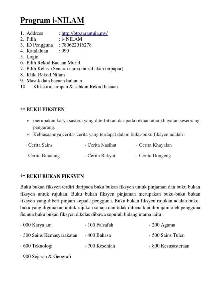 Buku cerita bahasa melayu untuk nilam sekolah menengah fiksyen . Buku fiksyen dapat diklasifikasikan mengikut bahasa, antaranya : Bengkel penggunaan buku rekod bacaan nilam baharu tambah baik pkg kukup. Program nilam menerusi google classroom (kemaskini pada 25/9/2020).